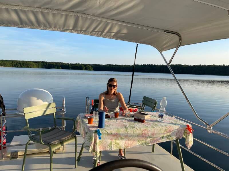 Frühstück an einem Spätsommer Sonntag im sehr gepflegten und familiären Hafen Eldena an der Elde.